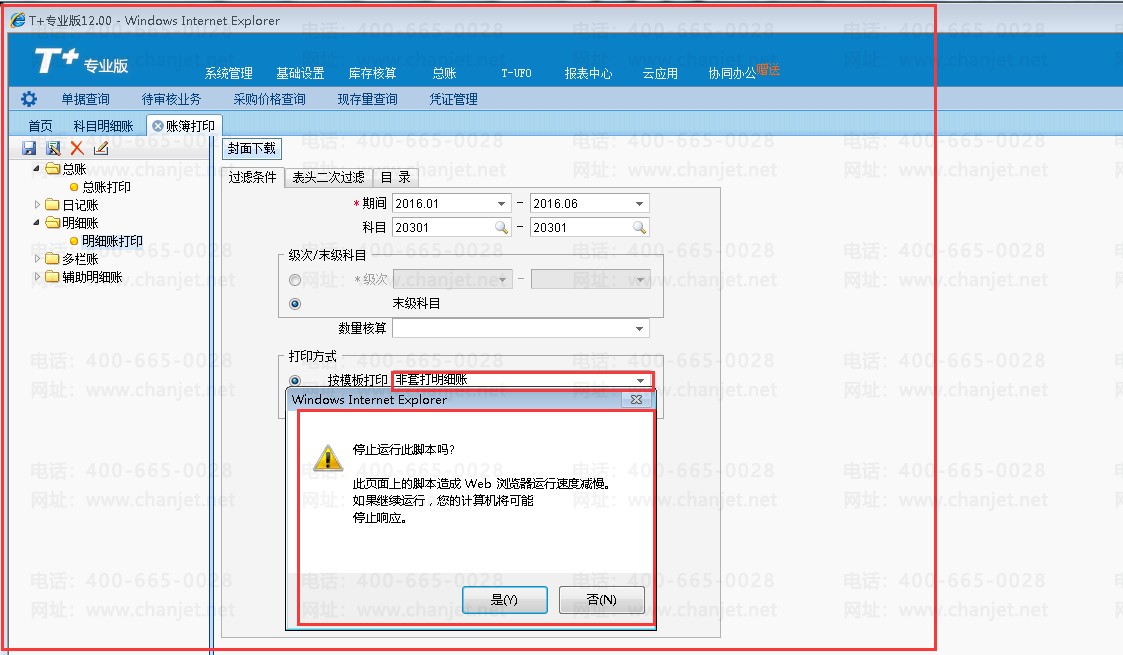1.账簿打印中的明细账打印模板没有固定行数导致: