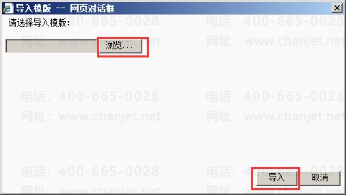 3、登入需要打入模板的账套,同样打开“打印模板设置“,点击”导入模板“图标,弹出“请选择导入模板”的对话框,点击“浏览”选择模板所在路径,并选中模板,再点击“导入”。