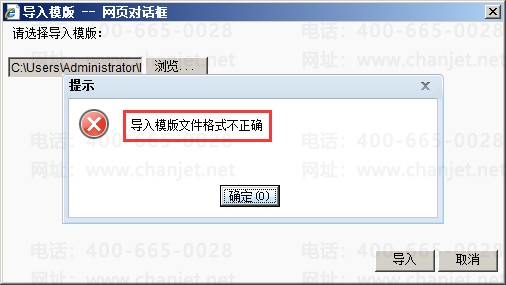 4、若导入时提示“导入模板文件格式不正确“这其实是由于IE选项设置的问题