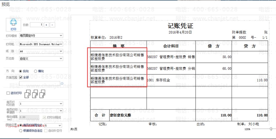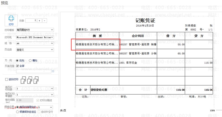 问题现象:如下图,当凭证摘要或者单据字段内容太多导致一行打印不下,内容截断或者自动缩放显示时,如何设置为打印内容自动折行。