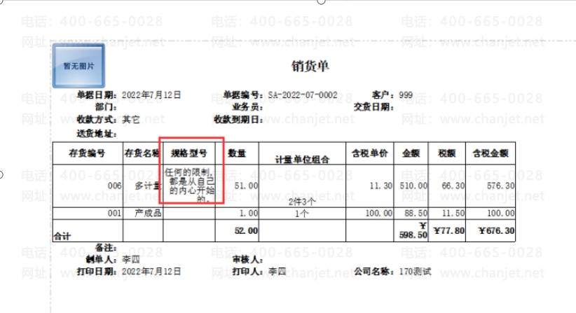 打印明细不能根据字的多少进行自动调整高度。