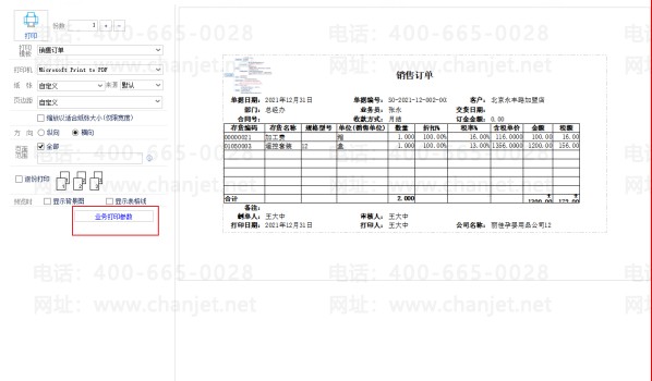 2、在打印预览界面点击【业务打印参数】