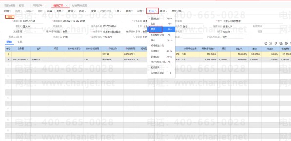 1、选择单据,点击【打印】-【预览】