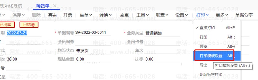 打开销货单,点击-打印-打印模板设置