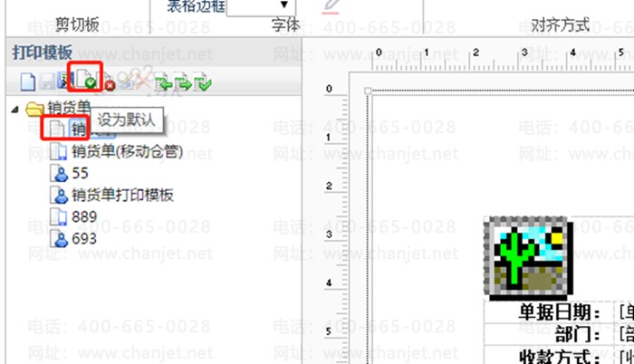 2.将其中一个常用模板设置为默认模板,然后保存模板退出,再重新打开销货单预览打印即可显示正常。