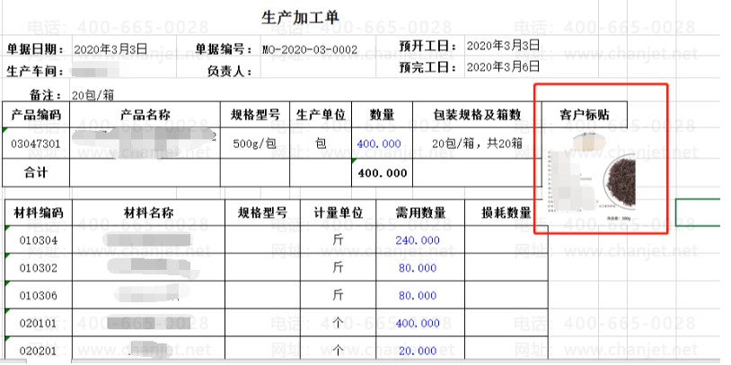 生产性企业,根据客户提供的产成品图片,分别在生产加工单上上传不同客户提供的产成品图片进行生产。