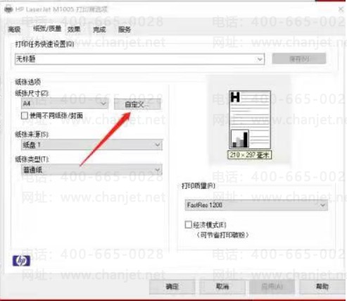 2.点击首选项-纸张/质量-自定义-输入自定义纸张的名称增加