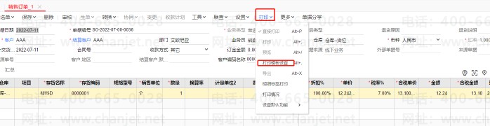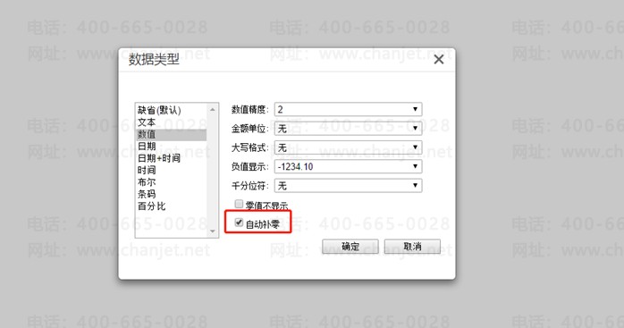 3、在打印模板设置中选中含税金额字段,然后右键---数据类型---数值,取消勾选自动补零