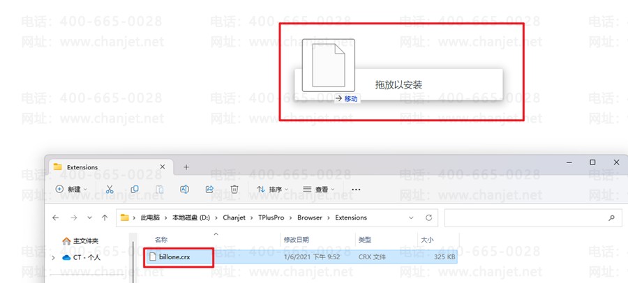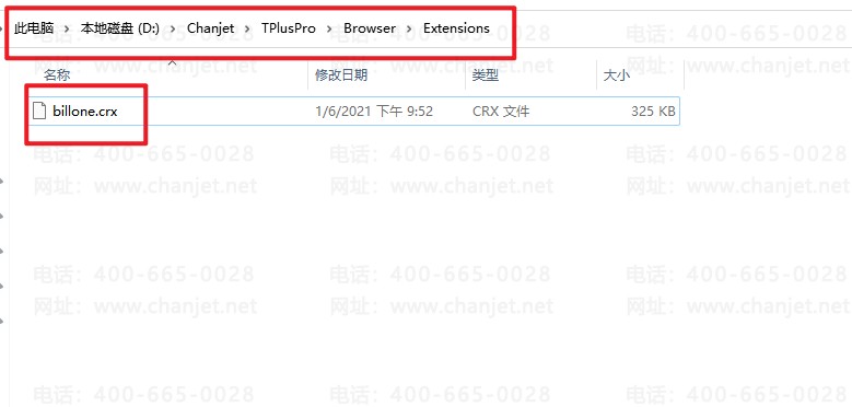 方案一:T+浏览器安装路径下X:\Chanjet\TPlusPro\Browser\Extensions的billone.crx文件就是扩展程序文件