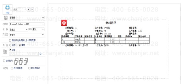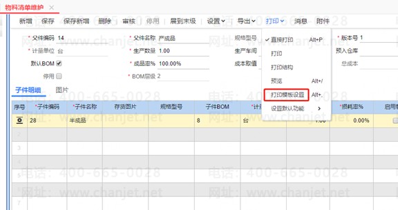 4、退出打印模板设置界面在物料清单维护界面,重新选择【打印】-【打印结构】选择刚设计的打印模板打印即可。