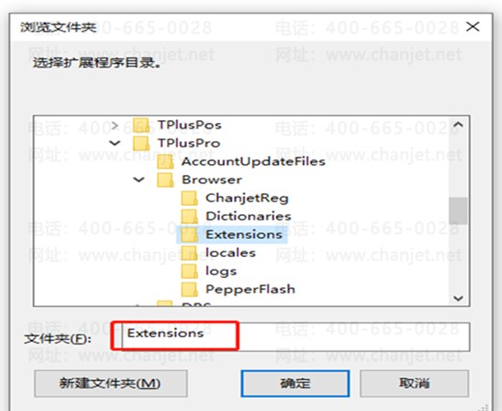 4.添加之前,将浏览器的安装目录下TPlusPro\Browser\Extensions的billone.crx ,将billone.crx复制一个副本,然后将其文件后缀修改为.zip格式,再直接解压到当前文件夹,然后将副本删除,再进行选择这个路径的文件夹Extensions进行加载即可。