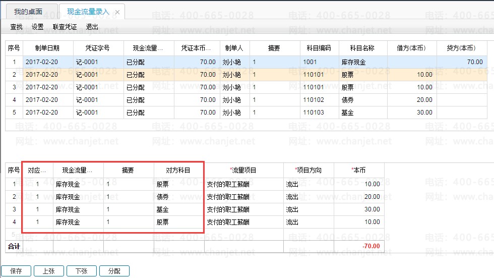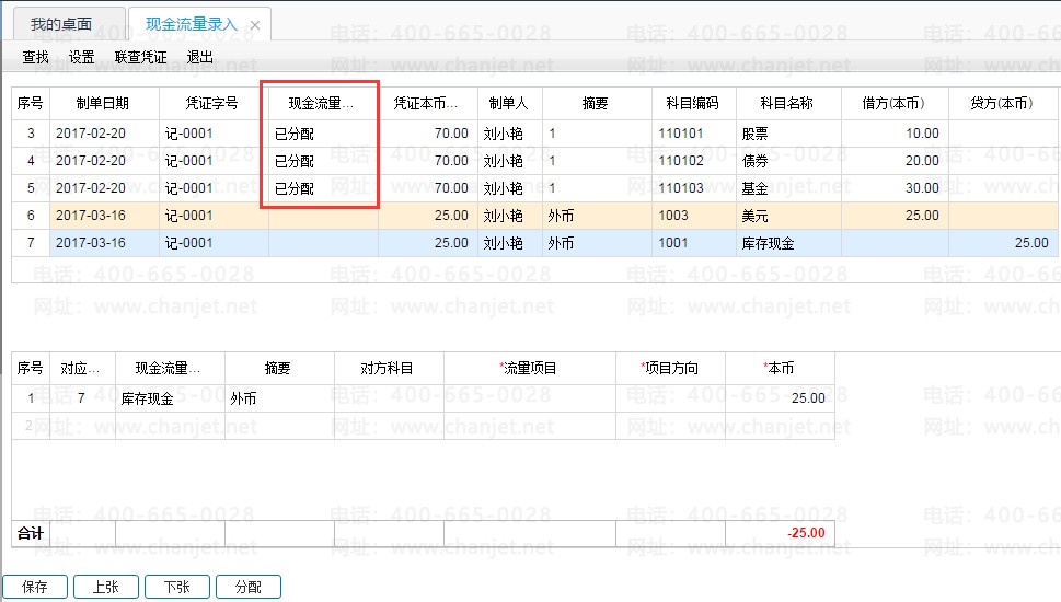 【问题分析】由于是中途启用的现金流量,在未指定科目前,填制的凭证是没有分配现金流量项目的,如果要取到完整的现金流量表的数据,需要对之前的凭证进行现金流量的补录,预置现金流量项目,可通过现金流量录入功能进行补录。