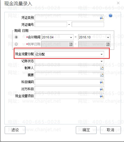 上述操作若想一次性找到所有的现金流量凭证,可到现金流量录入界面,选择已分配的凭证: