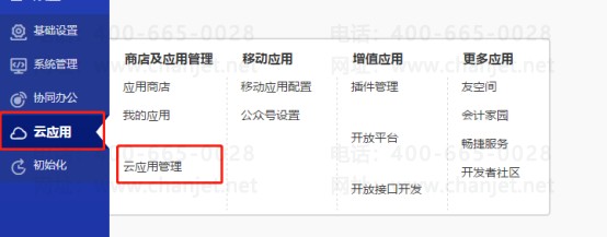 2、登录进账套,点击【云应用】-【云应用管理】-【服务器网络连接】