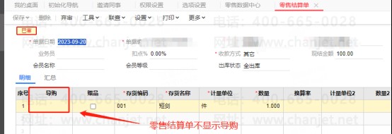 POS开单录入了导购员,零售单上也有导购员,但是零售结算单上不显示导购员
