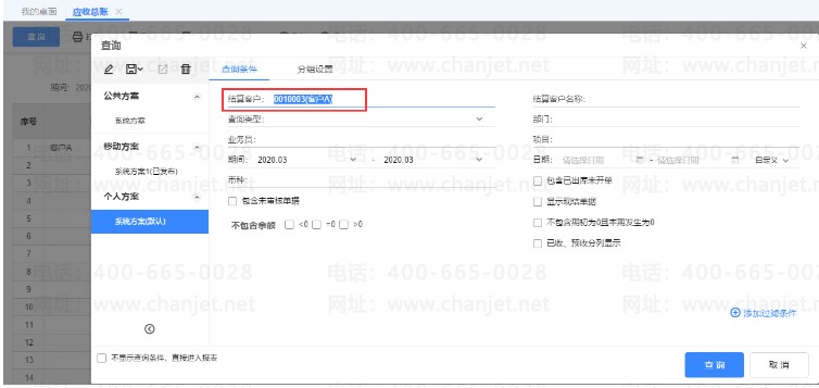 2、查看发布到移动端的应收总账的查询条件-分组设置勾的是按客户