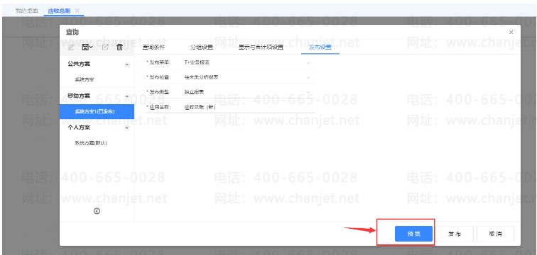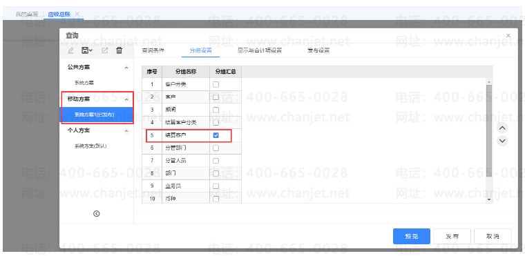 需要将发布到移动端的查询条件-分组设置改成勾结算客户再发布查看