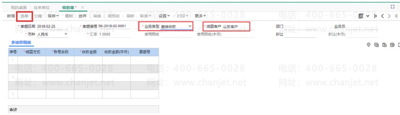 这个是因为系统管理-选项设置-往来中勾选了自动核销(客户档案也默认勾选了参与自动核销),业务类型变动直接收款,从而不能点击选单。