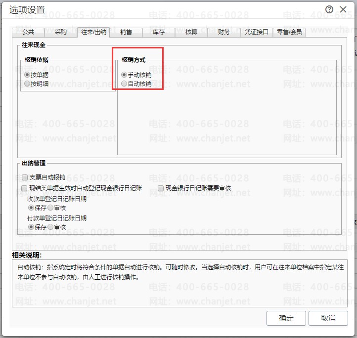 1.系统管理-选项设置-往来中勾选手动核销