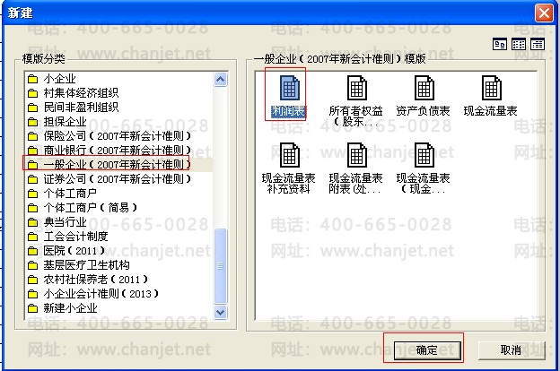 1、登入T3软件,打开财务报表模块后,依次点击“文件”-“新建”,左边模板分类选择“一般企业(2007年新会计准则)行业”,右边模板选择“利润表”确定,如下图: