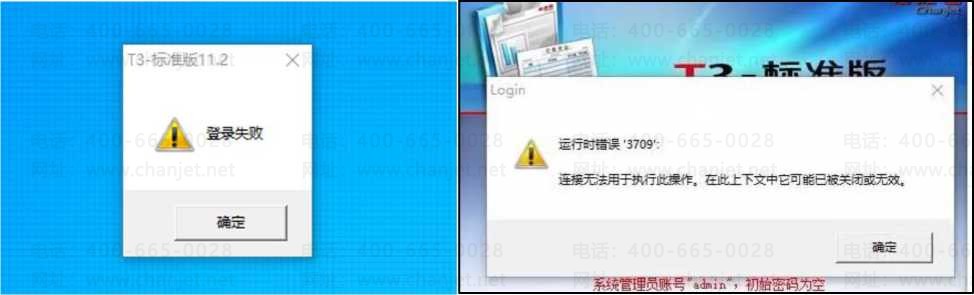 点击T3提示登录失败,点确定后报运行时错误’3709':