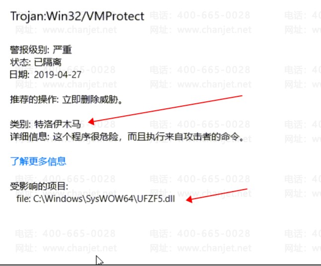 由于winl0安全中心的病毒和威胁防护更新后将UFZF5.dll文件误杀导致。