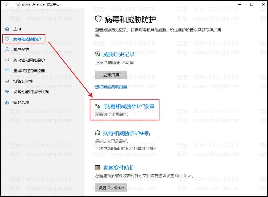 4.再点击【病毒和威胁防护】-【”病毒和威胁防护”设置】。