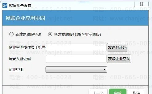 输入手机收到的短信验证码后,点击按钮【获取空间】将该管理员手机号在易联中设置绑定的所有企业空间信息在【企业空间】项的下拉列表中显示;