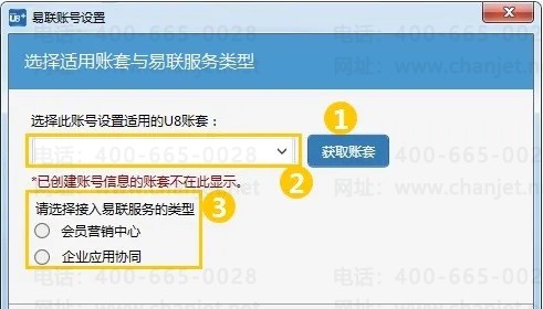 显示U8账套信息。仅支持单选,已经关联易联账号的账套,默认不在下拉列表中显示;