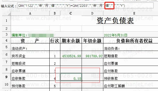 3、这种情况下,取得是该一级科目下,余额方向为借方的科目余额的合计,也就是0.10