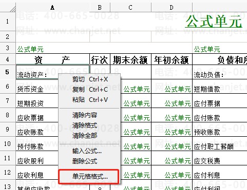 报表模板中,右击单元格修改格式。