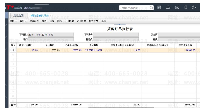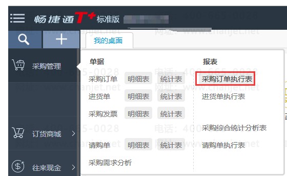 1、模块列表中点击采购管理——采购订单执行表