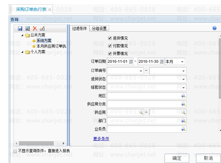 2、查询采购订单所在期间,点击确定