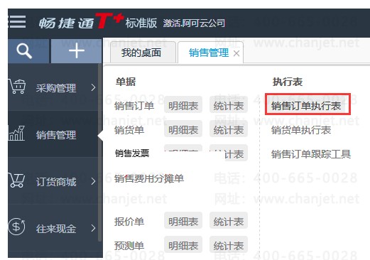 1、模块列表中点击销售管理——销售订单执行表