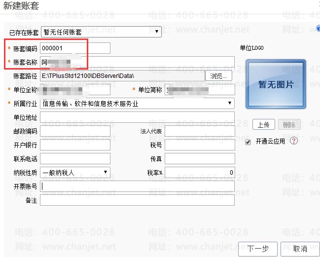 3、输入基本信息后,点击【下一步】,进入会计期间