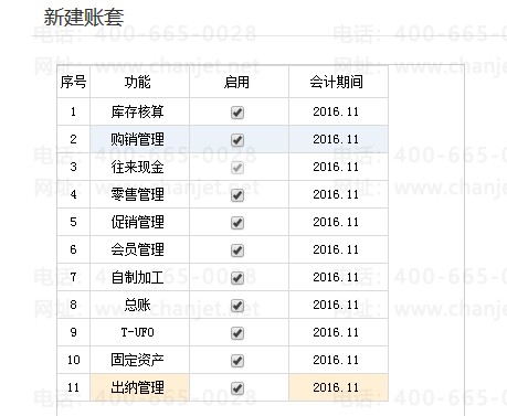 4、输入会计期间后,点击【下一步】,进入功能启用