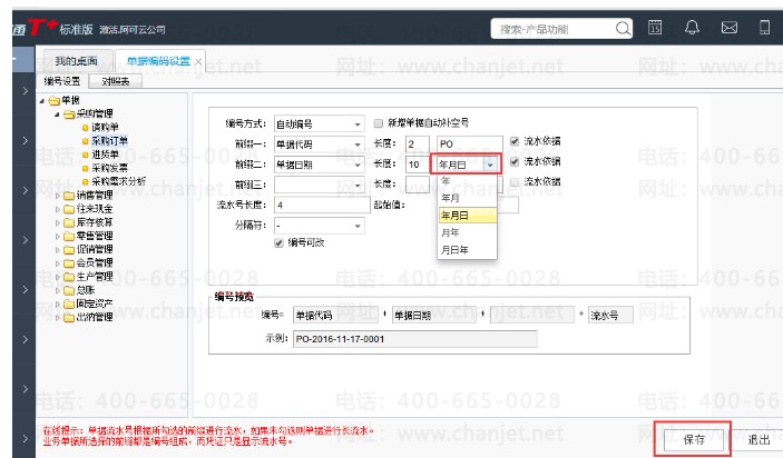 3、修改设置前缀号依据年月日,点击保存