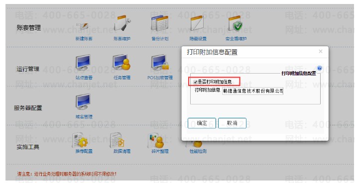 CTRL+ALT+Y快捷键—打印附加信息配置,去掉勾选,也可调整“畅捷通软件”为其他文字
