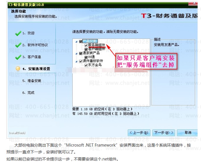 三、最后进行用友T3用友通标准版安装、.net组件;