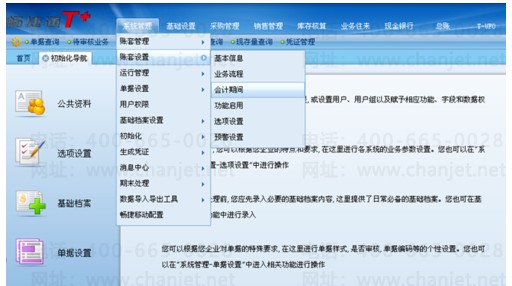 登陆软件,点击【系统管理】》【账套设置】》【会计期间】