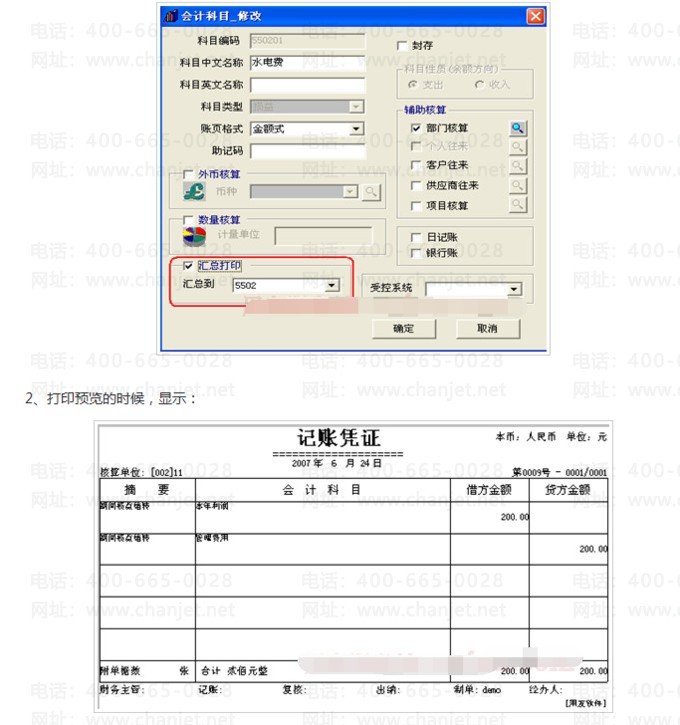 如果需要在一张凭证,对于同一个科目的明细科目要实现汇总打印。