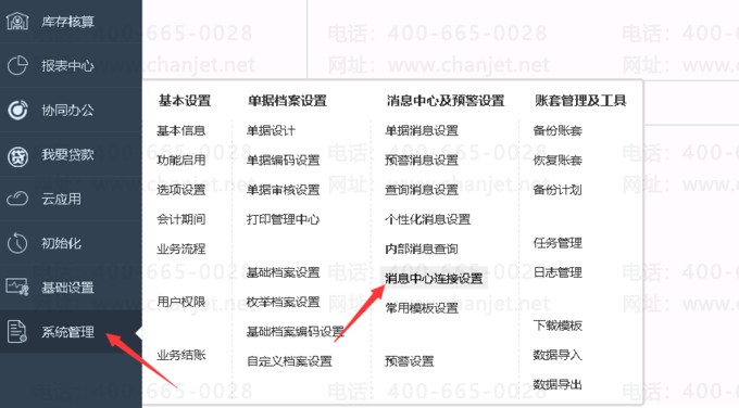 1.陆T+12.1短信帐号设置中心,菜单路径如下。