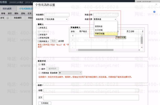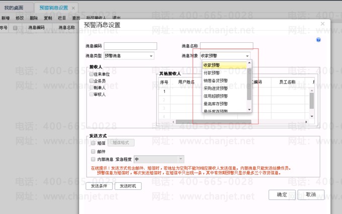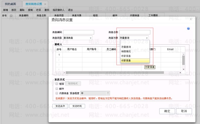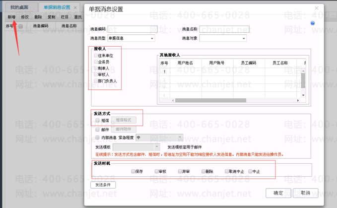 2.设置完后,就可以设置以下相关的单据,及要发送的信息如下图: