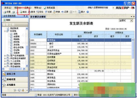 在余额表界面,点击“输出”,选择保存路径,输入文件名,保存类型选.xls,“确定”即可。
