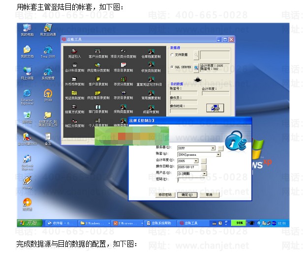 1、把001帐套的基础数据和会计凭证复制到002帐套,则001帐套为数据源,002帐套为目的数据
