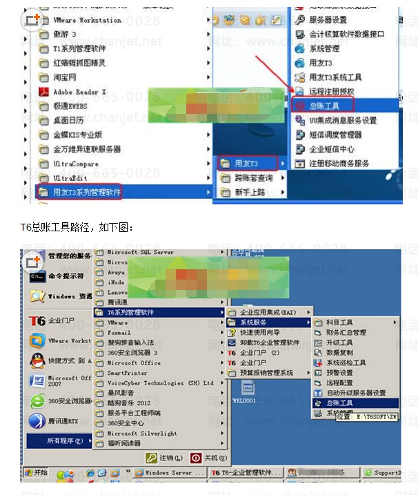 T3总账工具路径,电脑开始菜单→所有程序→T3系列管理软件→总账工具,如下图: