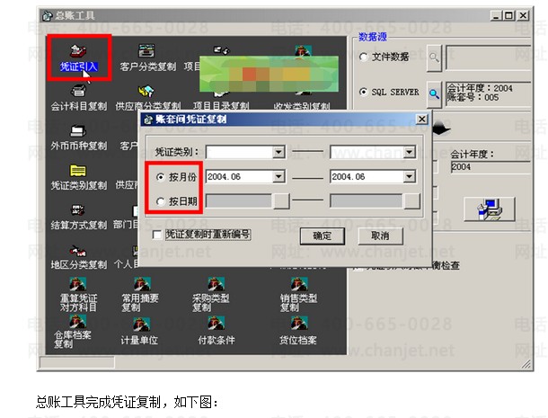 总账工具可以对凭证、基础数据进行复制。当新建帐套的公共目录与已建立的公共目录相同或类似,可以使用本功能对公共目录进行复制。另外,本功能对不同帐套的公共目录进行复制,可以在不同帐套中进行凭证传递,完成不同帐套复制公共目录的功能。