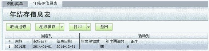 维护中心的年结存信息表可以用来查看各会计年度的起止日期和单据数。