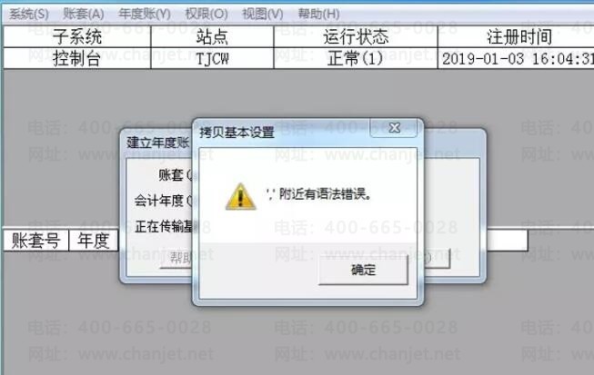 问题现象:用友T3建立2020年度账时报错“附近有语法错误”