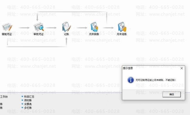 现象一、提示:上月未结账,本月不能记账。解决方案:将上月进行月末结账后再操作本月记账。
